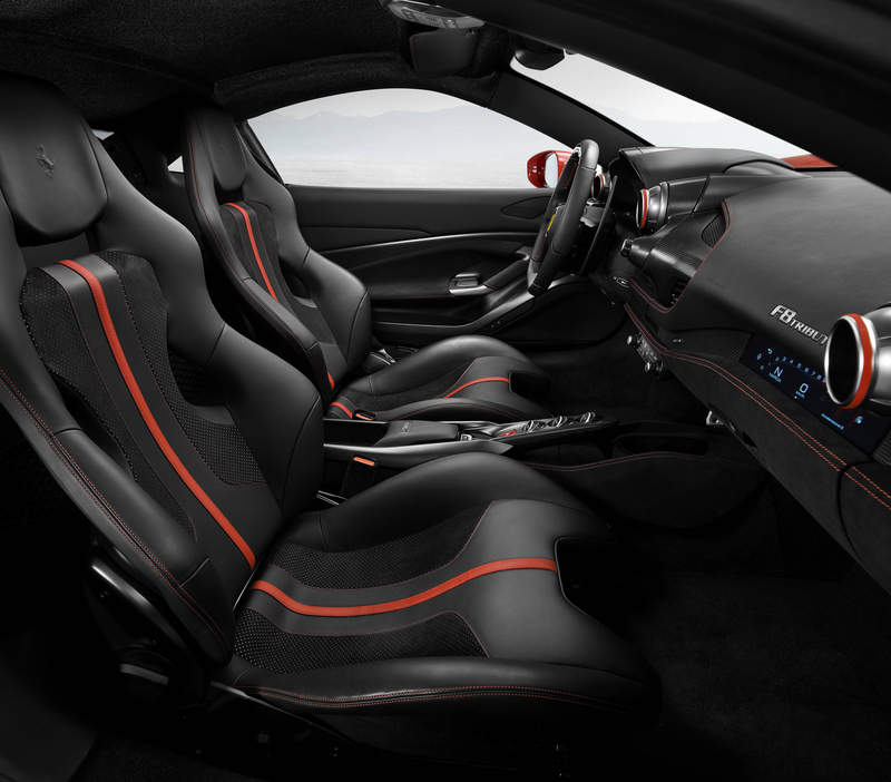 El F8 Tributo utiliza el mismo motor del 488 Pista , un motor V8 de doble turbo de 3.9 L que tiene una potencia de 720 PS (530 kW; 710 hp) y 770 N 7m (568 lb⋅ft) de torque, haciéndolo el Ferrari V8 convencional más potente producido hasta la fecha. Las cámaras y colectores de admisión específicos con dinámica de fluidos optimizada mejoran la eficiencia de combustión del motor, gracias a la reducción de la temperatura del aire en el cilindro, que también ayuda a aumentar la potencia.